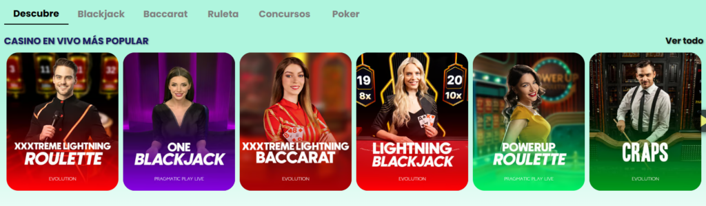 - Ruleta en vivo – Múltiples variantes de ruleta con crupieres reales y emocionantes opciones de apuesta.